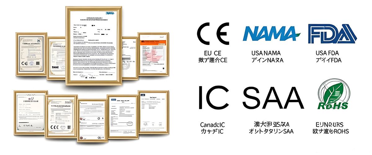 2025年現在、100件以上の特許を保有し、業界内でリードしており、米国NAMA認証、米国FCC、FDA認証、カナダIC認証、オーストラリアsaa認証、欧州CE認証、ROSH基準など多くの認証を保有しています。